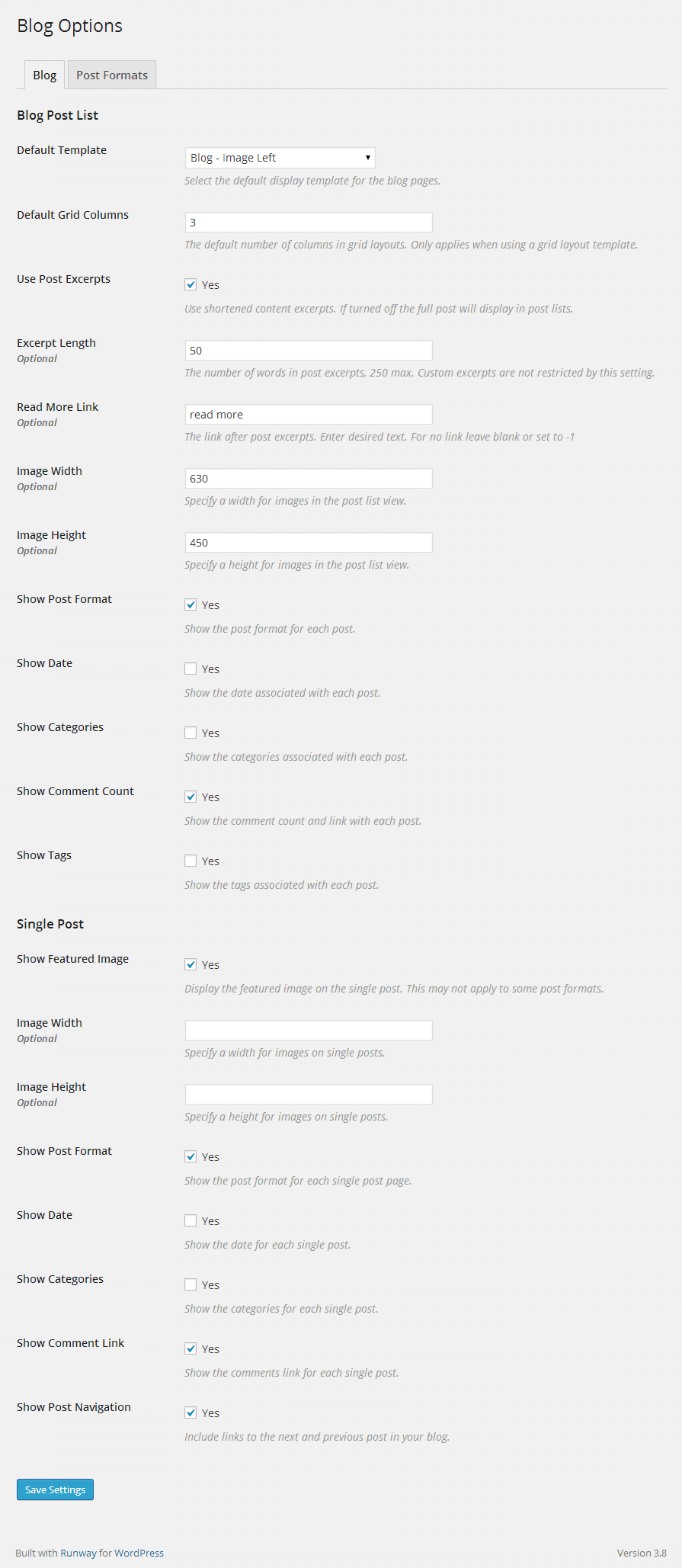 [/vc_column_text][vc_column_text]Blogs can be enabled as the default home page, from a page template or by inserting a shortcode. The blog settings let you configure each option exactly as needed. When using a blog shortcode you can specify the options for each blog individually.Configure the default blog settings from the “Settings > Blog Options” area of your admin.[/vc_column_text][vc_single_image image=”3679″ img_link_target=”_self” img_size=”full”][vc_single_image image=”3682″ img_link_target=”_self” img_size=”full”][/vc_column][vc_column width=”1/3″][vc_column_text]