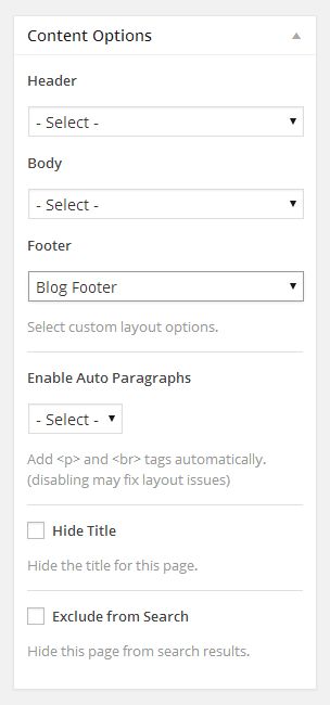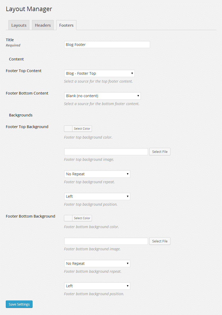 Custom footers let you modify the content and appearance of your page footers. Each footer is attached to a layout using the Layout Manager and can also be easily assigned to individual pages and posts. Using custom footers you can incorporate extra information, details and relevant links to the important areas of your website.